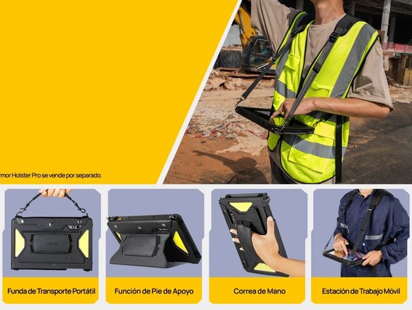 Este elemento es conocido por su excepcional durabilidad frente a caídas e impactos. Este robusto material disminuye significativamente la probabilidad de que la tableta sufra grietas o se haga añicos, lo que lo hace ideal para su uso en trabajos exigentes.